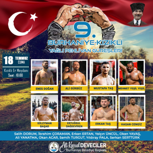 Burhaniye Belediye Başkanı Ali Kemal Deveciler’in ev sahipliğinde yapılacak organizasyonda, Türkiye’nin tanınmış başpehlivanları güreş tutacak. Bu yılki müsabakalarda: