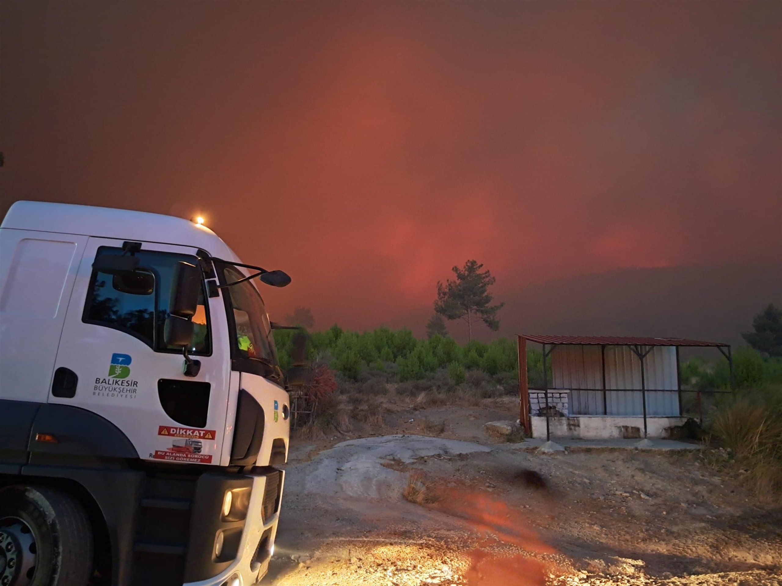 gelen yangınlara da anında reaksiyon göstererek personel ve araç sağlayan Balıkesir İtfaiyesi,