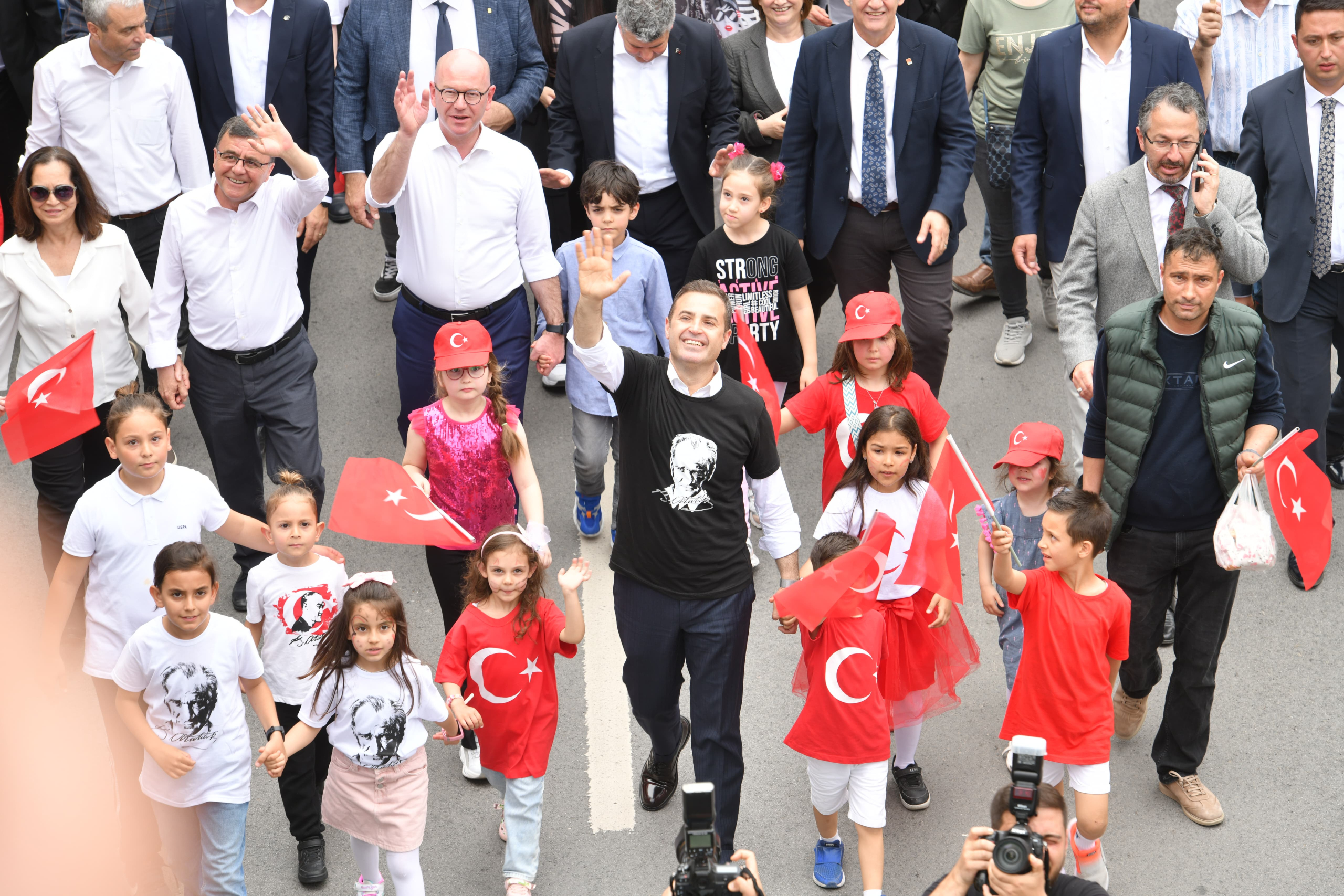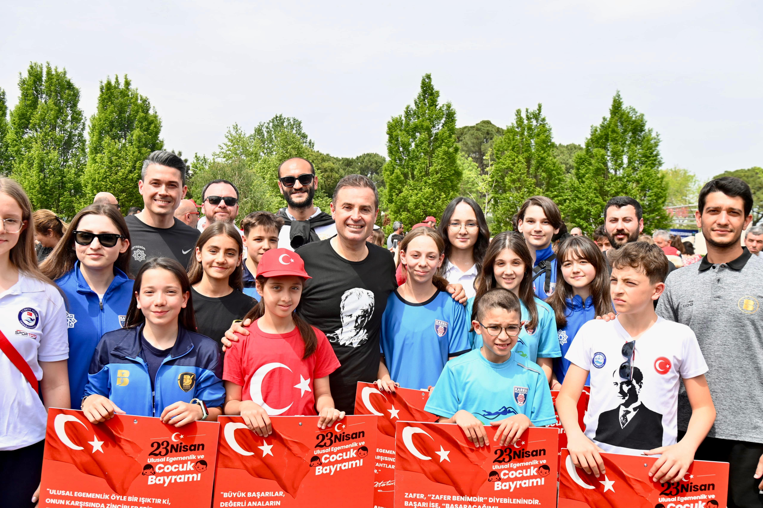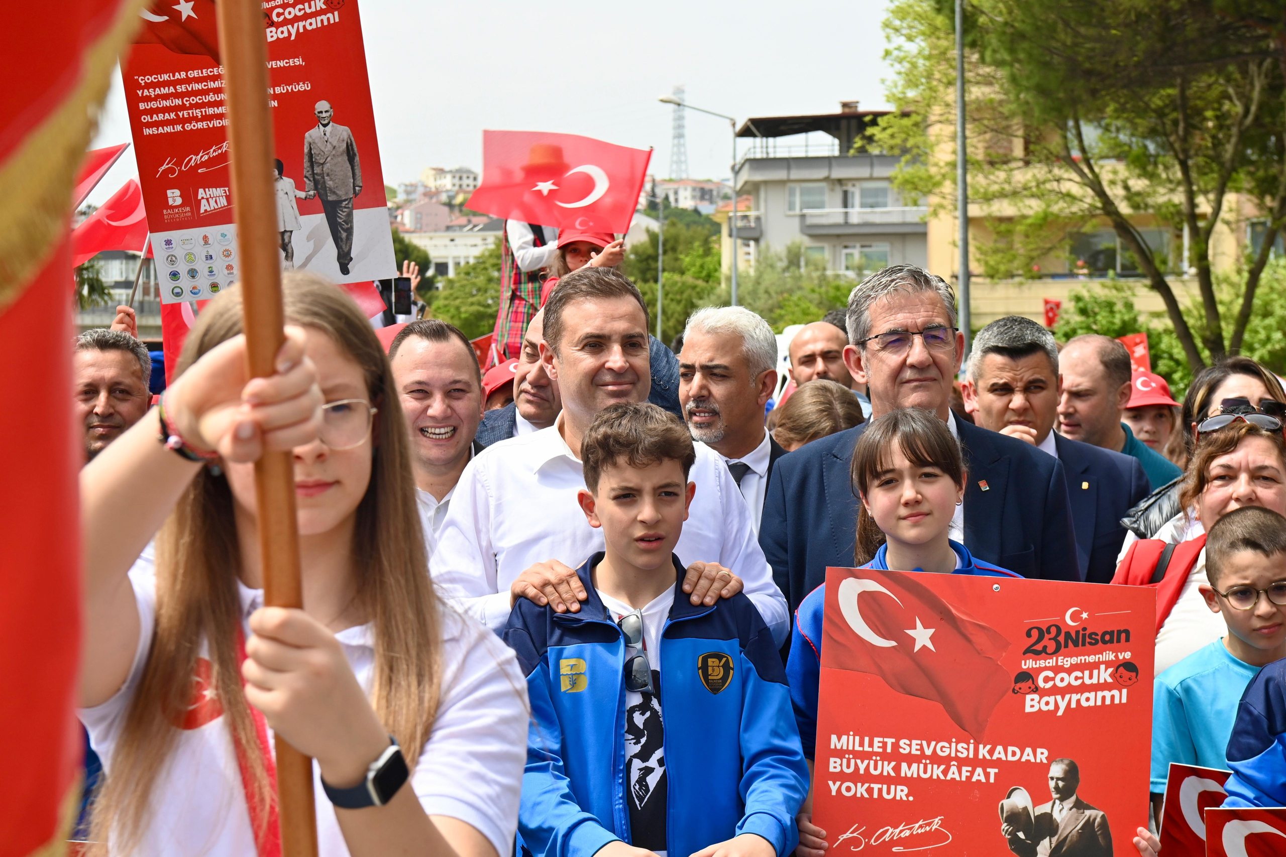 Balıkesir’de 23 Nisan Ulusal Egemenlik ve Çocuk Bayramı coşkusu, yıllar sonra sokaklara, caddeleri kırmızı beyaz renklere bürüdü. Binlerce Balıkesirli, Büyükşehir Belediye Başkanı Ahmet Akın ile birlikte Kuvayı Milliye Meydanı’ndan başlayan kortejle; Vasıf Çınar Caddesi, Gar Meydanı, Milli Kuvvetler Caddesi, Anafartalar Caddesi, Kızılay Caddesi ve Atatürk Parkı güzergahlarında hep birlikte yürüdü. Balıkesir Büyükşehir Belediyesi Bandosu’nun coşku dolu marşlarına eşlik ederek ellerindeki Türk Bayraklarıyla Atatürk Anıtı’nın önüne kadar gelen Balıkesirliler, çocuklar için onlarca etkinlik içeren organizasyonda 23 Nisan Ulusal Egemenlik ve Çocuk Bayramı’nı kutladı. Ulu Önder Gazi Mustafa Kemal Atatürk’ün çocuklara armağan ettiği 23 Nisan; Balıkesir’de; Büyükşehir Belediyesi’nin gerçekleştirdiği birçok etkinlikle; keyif, neşe, birlik ve berraberlik içinde kutlandı.