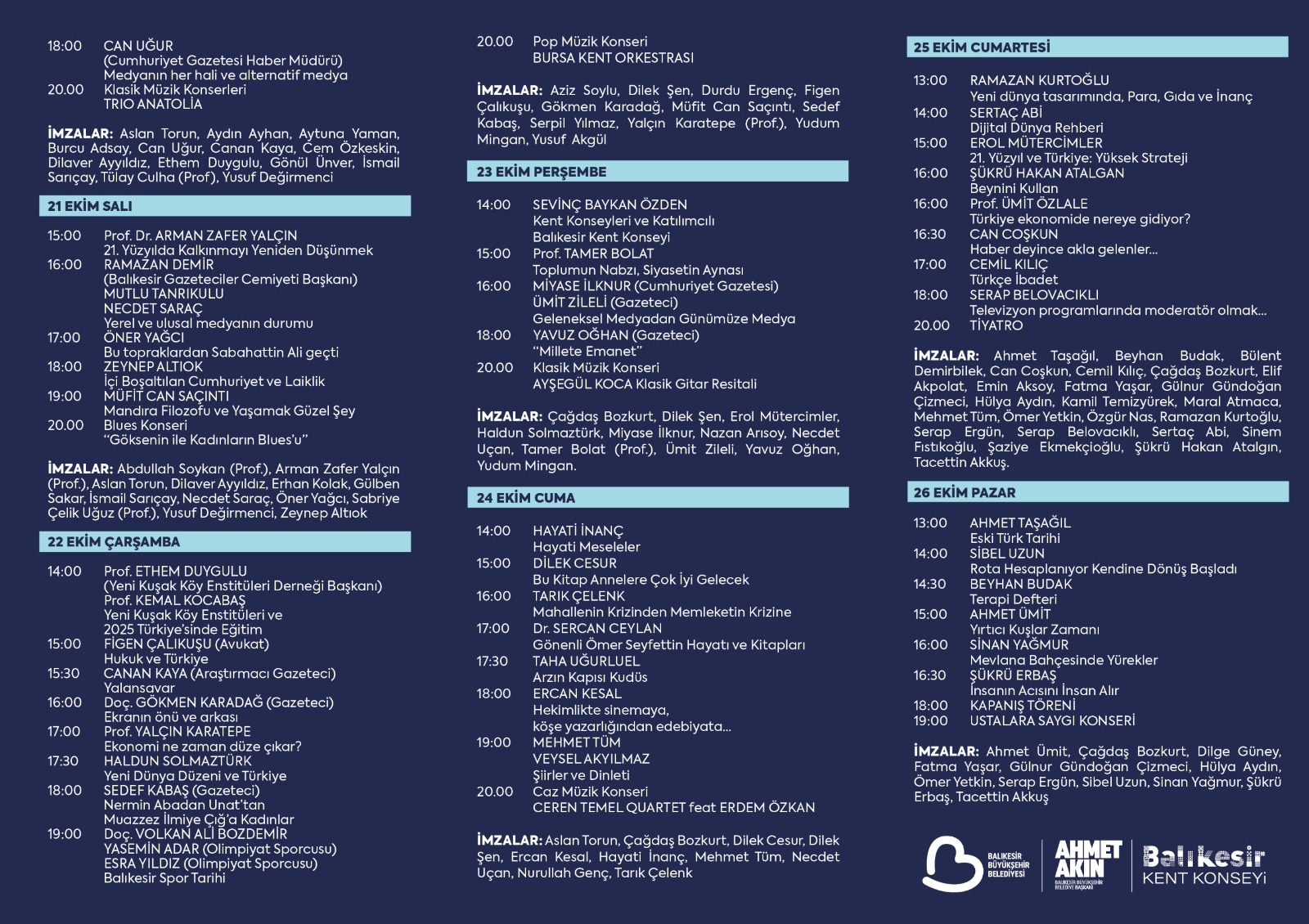 Cumhuriyet’in kültürel birikimini ve aydınlanma ruhunu Balıkesir’e taşımayı hedefleyen fuarda, 200’ü aşkın yazar, gazeteci ve akademisyen ile 100’ü aşkın yayınevi yer alacak. Söyleşiler, imza günleri ve dinletilerle edebiyat tutkunları 10 gün boyunca bilginin ışığında buluşacak.