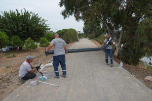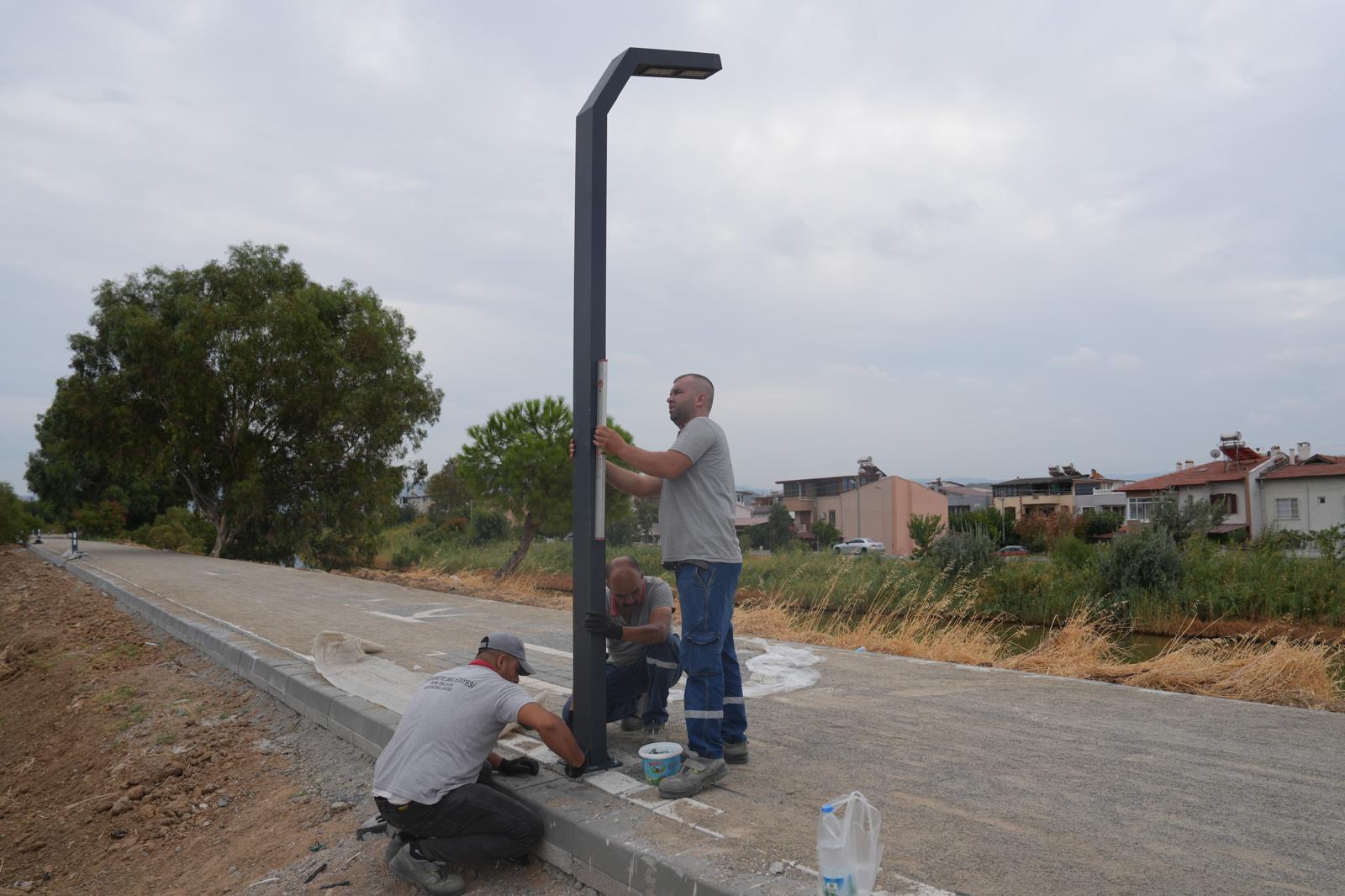 Burhaniye Belediyesi Fen İşleri Müdürlüğünce yapılan çalışmalarda, Karınca Deresi kenarında toplam 6000 metrekarelik yol çalışması gerçekleştiriyor 1.80cm eninde bisiklet ve 2.20cm eninde yürüyüş için ayrılan 1500 metre uzunluğunda yol boyunca çalışmalar sürüyor. Vatandaşların rahatça bisiklet sürerek yürüyüş yapabilecekleri dere kenarındaki alanda belediye ekipleri tarafından aydınlatma çalışmaları da başladı. 20 metrede bir koyulan ledli aydınlatma direkleri ile de akşamları da güvenli ve kullanılabilir doğal, spor alanı sunulacak. Yeşilin önemine vurgu yapan Başkan Deveciler, “İlçemizin doğal güzelliklerini koruyarak değiştirmek odaklı çalışıyoruz. Karınca Deresini de halkımızın rahatça vakit geçirebileceği spor yaparak ailesi ile vakit geçirebileceği şekilde projelendirdik” dedi.