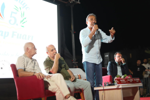 Çelik oturmuştu. Yazlık sinema keyfinin ardından, Fuar Koordinatörü Sinan Karahan yönetiminde