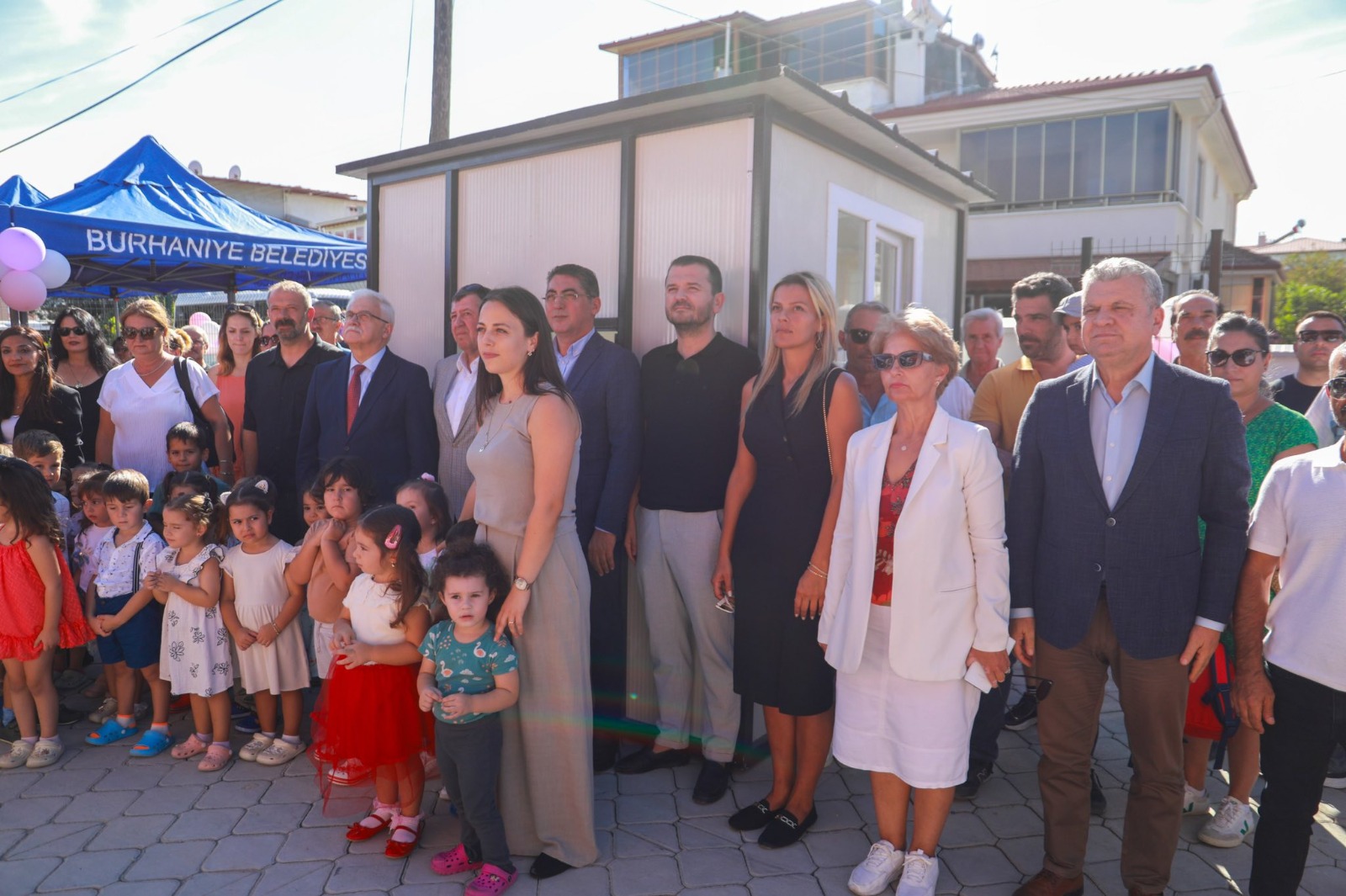 Burhaniye Belediyesi Nurten Aslan Çocuk Gündüz Bakımevi’nin açılış töreni yapıldı. Burhaniye Belediye Başkanı Ali Kemal Deveciler’in ev sahipliğinde gerçekleşen açılışa; Gömeç Belediye Başkanı Melih Bağcı, Burhaniye İlçe Emniyet Müdürü Faik Karabaş, Edremit Belediye Başkan Yardımcısı Metin Tunçer, Burhaniye Belediye Başkan Yardımcıları Ayten Tuna, Oktay Erbalaban, Tamer Midilli, Burhaniye Belediye Meclis Başkanvekili Tarık Erdil, Nurten Aslan Çocuk Gündüz Bakımevi’nin hayırseverleri Ümit Aslan ile Uğur Aslan, Nur Çakıroğlu Albak Çocuk Gündüz Bakımevi’nin hayırseveri Nur Çakıroğlu Albak, CHP Burhaniye İlçe Başkanı Aylin Yıldırım, İYİ Parti Burhaniye İlçe Başkanı İbrahim Yerel, Burhaniye Kent Konseyi Başkanı Hasan Metin, Burhaniye Belediye Meclis Üyeleri ve vatandaşlar katılım sağladı.