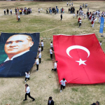 Kutlamalar açılan dev Türk ve Atatürk bayrağıyla marşlar eşliğinde son buldu.