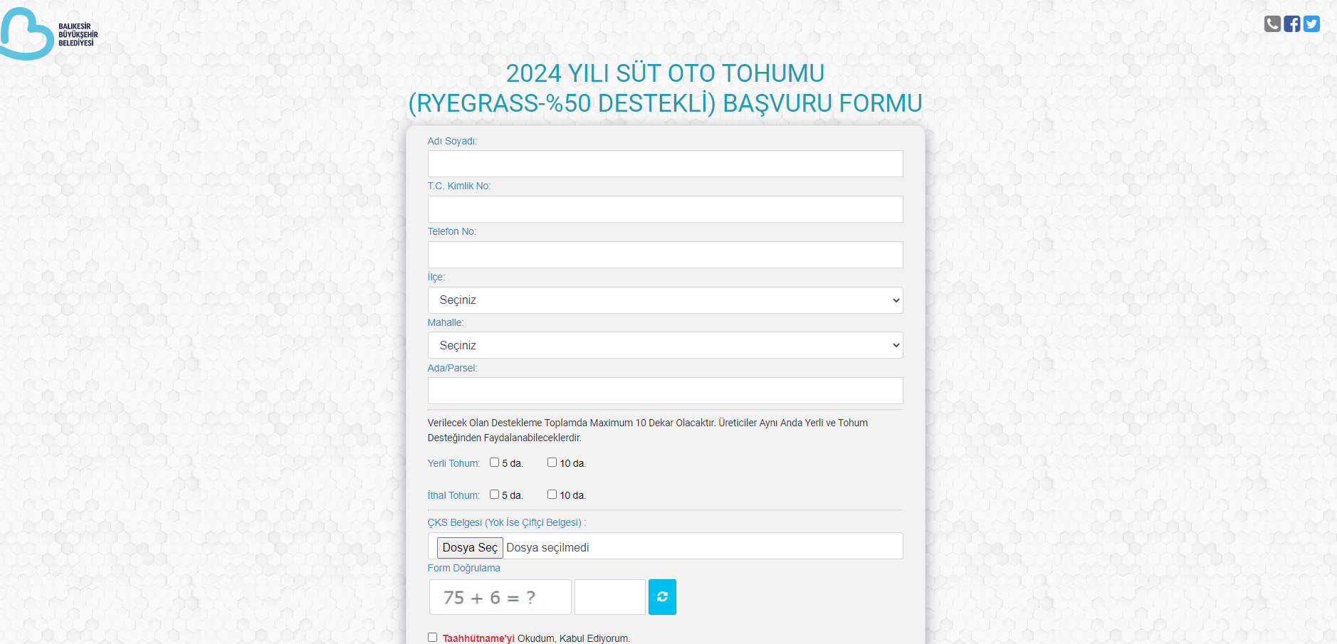 gününe kadar https://basvuru.balikesir.bel.tr/Tohum adresinden başvurabilecek.