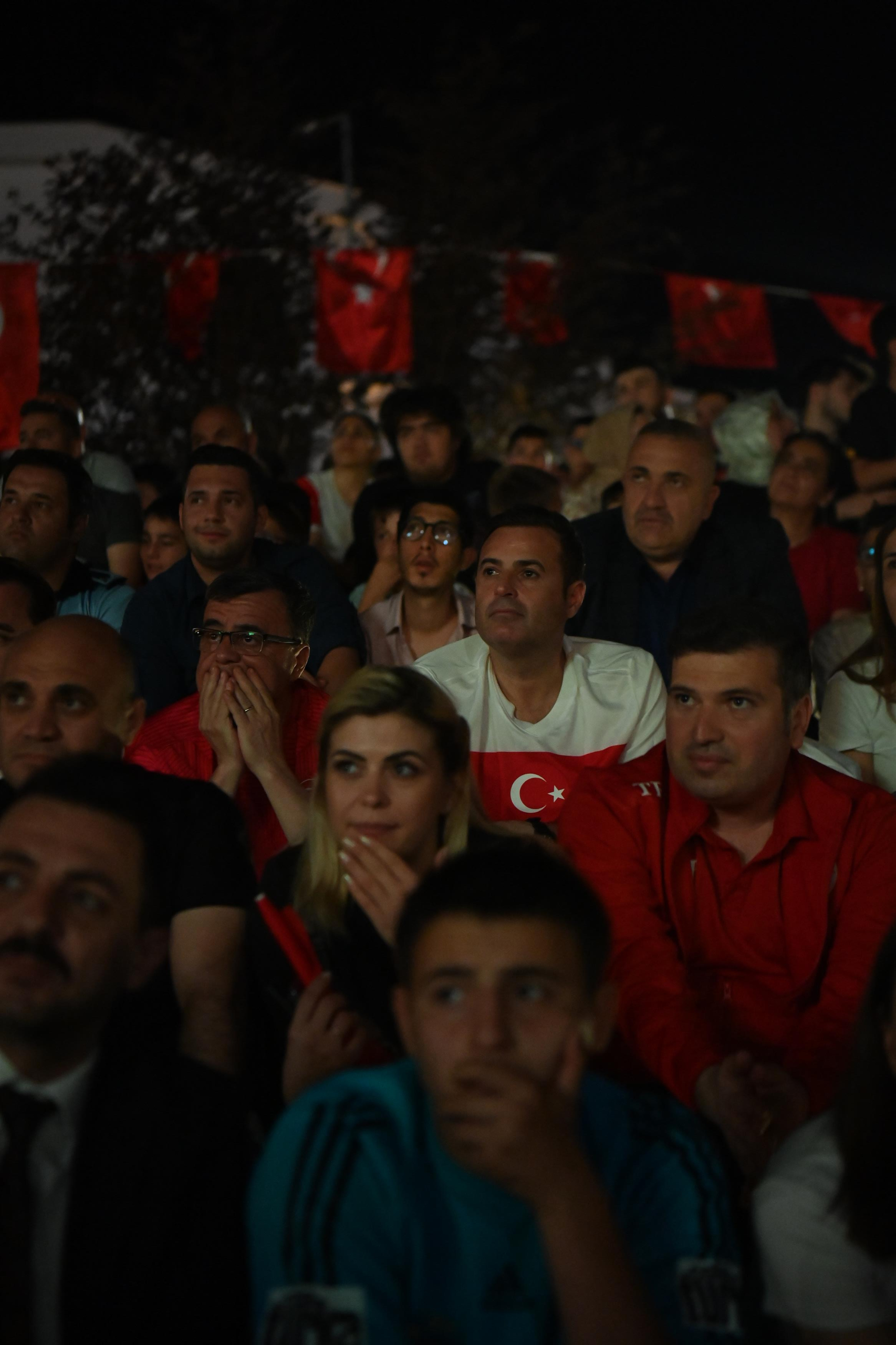 devam ediyor. LED ekranlarda milli maçı Balıkesirlilerle birlikte izleyen Büyükşehir