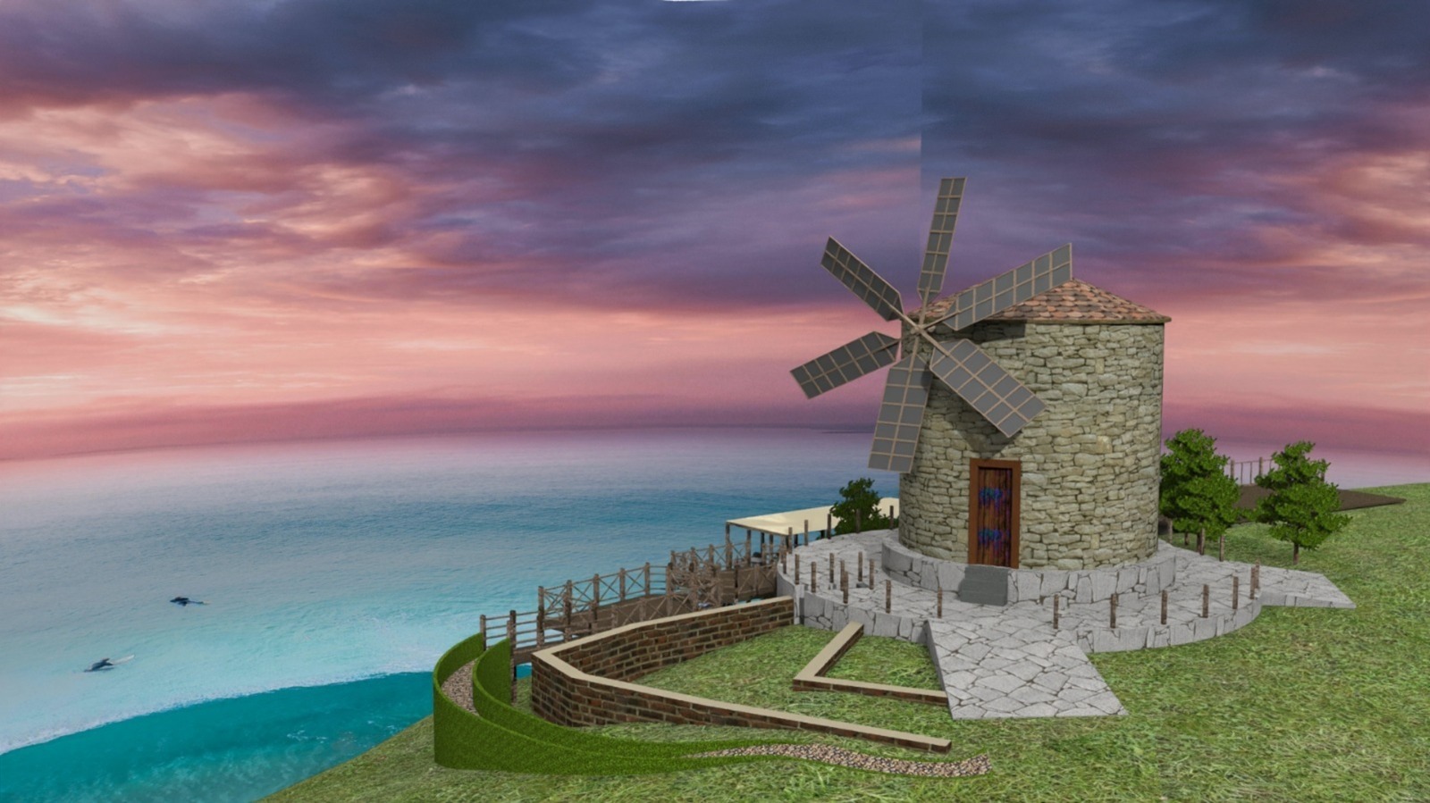 Ayvalık Belediyesi’ne tahsisli, tescilli yel değirmeni bulunan taşınmaz üzerinde kafeterya alanı düzenlenecek. Arazinin topoğrafik yapısına uygun olarak, değirmenin kuzeyine, farklı kotlarda kısmen gölgelikleri olan ahşap deck’ler, mutfak ve ıslak hacimler yerleştirilecek. Ahşap ayaklar üzerindeki teraslar arazinin mevcut eğimi dikkate alınarak yerleştirilecek. Doğal sit olan alana müdahalede bulunulmayacak. Sadece kapalı mekanlar ve bu kottaki teras için arazide düzenleme yapılacak. Doğal ışık ve havalandırma sağlanan, mutfak ve ıslak hacimlerin üzeri de oturma terası olarak kullanılacak. Teraslar arası, ahşap basamaklar ve rampa ile erişim sağlanacak. Arkeolojik kalıntılar barındırma ihtimali üzerine, arazinin geri kalan kısmına gerekli incelemeler yapılana kadar, müdahale edilmeden olduğu gibi bırakılacak.