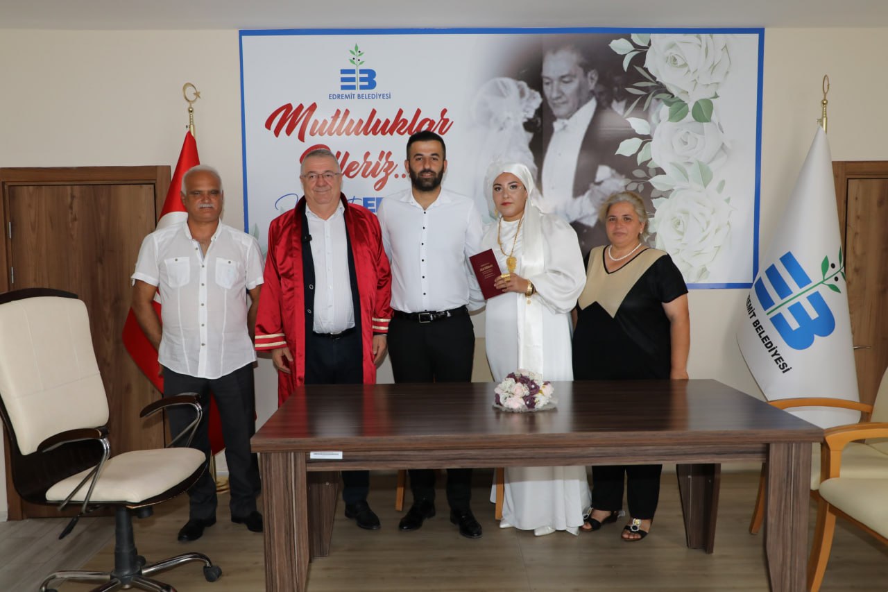 Yeni nikah salonunda ilk nikahı, Edremit Belediye Başkanı Mehmet Ertaş kıydı. Özge Can ve Ramazan Önen çiftinin nikah akdini gerçekleştiren Başkan Ertaş, genç çifte mutluluklar dileyerek yeni salonun hayırlı olmasını temenni etti.