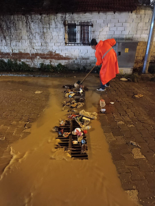 Edremit genelinde etkisini artıran sağanak yağışa karşı belediye ekipleri; tıkanan menfezler, su kanalları ve dere yataklarında kontrol ve temizlik çalışmalarını gece boyunca kesintisiz sürdürdü. Yapılan çalışmalarla suyun akışı sağlanarak olası taşkın riskleri minimize edildi.