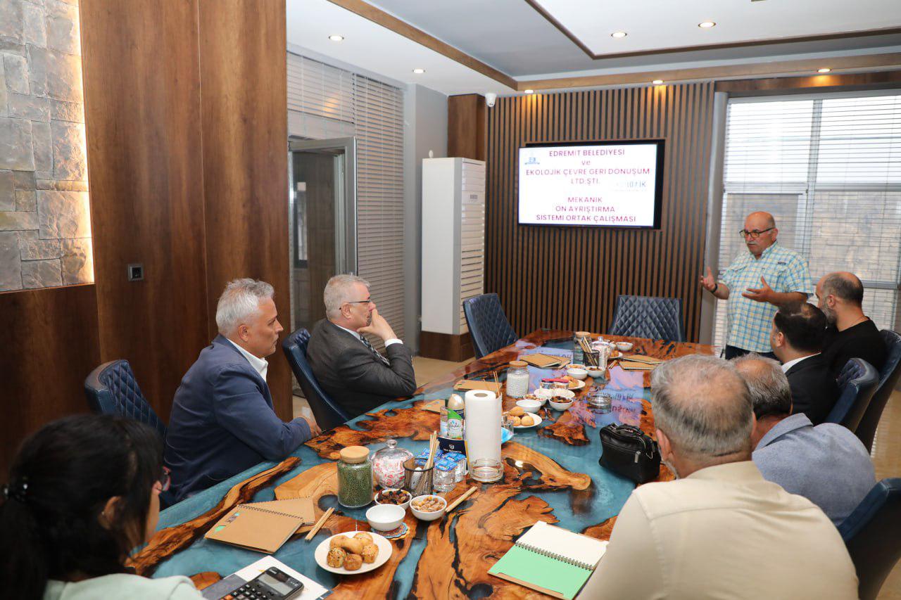 Edremit Belediyesi ve Ekolojik Çevre Geri Dönüşüm Ltd. Şti. arasında gerçekleştirilen mekanik ön ayrıştırma sistemi ortak çalışması konulu toplantıda, hayata geçirilmesi planlanan projeler masaya yatırıldı.