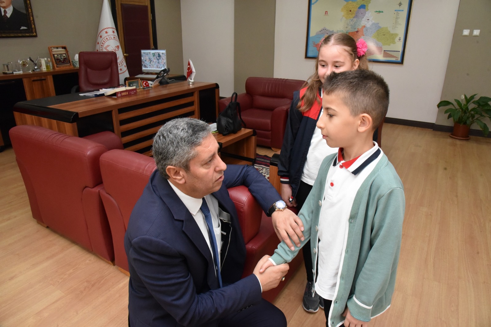 Karesi Sevinç Kurşun İlkokulu öğrencileri, Okul Müdürü Bahattin Gündüz ve öğretmenleri eşliğinde İl Milli Eğitim Müdürü Ali Tatlı’yı ziyaret etti. Ziyaret sırasında öğrenciler, okullarında gerçekleştirilen projeler ve etkinlikler hakkında bilgiler sundu. İl Milli Eğitim Müdürü Ali Tatlı, miniklerin gösterdikleri çabadan ve projelerden duyduğu memnuniyeti dile getirerek eğitimde yenilikçi yaklaşımların önemini vurguladı ve öğrencileri teşvik edici konuşmalar yaptı.