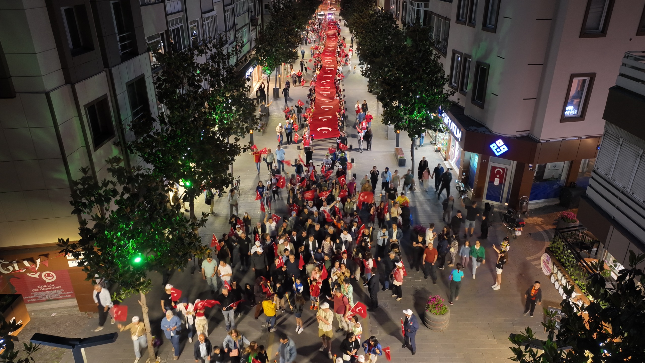 Türk Bayraklarından oluşturulan koridor halinde marşlar eşliğinde yürüyen binlerce Balıkesirli, caddeleri kırmızı beyaza bürüdü. Büyükşehir Belediyesi Bandosu’nun da eşlik ettiği Fener Alayı’nın sona ermesinin ardından 50. Yıl Spor Parkı’nda oluşturulan sahnede “Mörfi” grubu sahne aldı.
