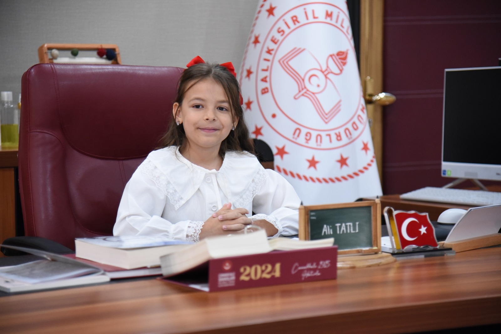 İl Milli Eğitim Müdürümüz Ali Tatlı, 23 Nisan Ulusal Egemenlik ve Çocuk Bayramı dolayısıyla koltuğunu temsili olarak Altıeylül Atköy İlkokulu öğrencisi Serra Türkan’a devretti. İl Milli Eğitim M...
