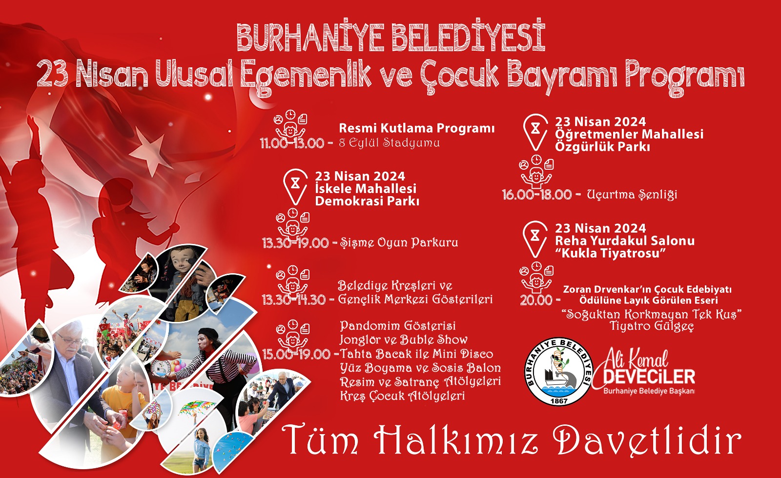Burhaniye Belediyesi tarafından; 23 Nisan Ulusal Egemenlik ve Çocuk Bayramı’nın coşku ile kutlanması için çeşitli etkinlikler planlandı. 23 Nisan Salı günü ilçede üç farklı noktada “Çocuk Şenliği” düz...