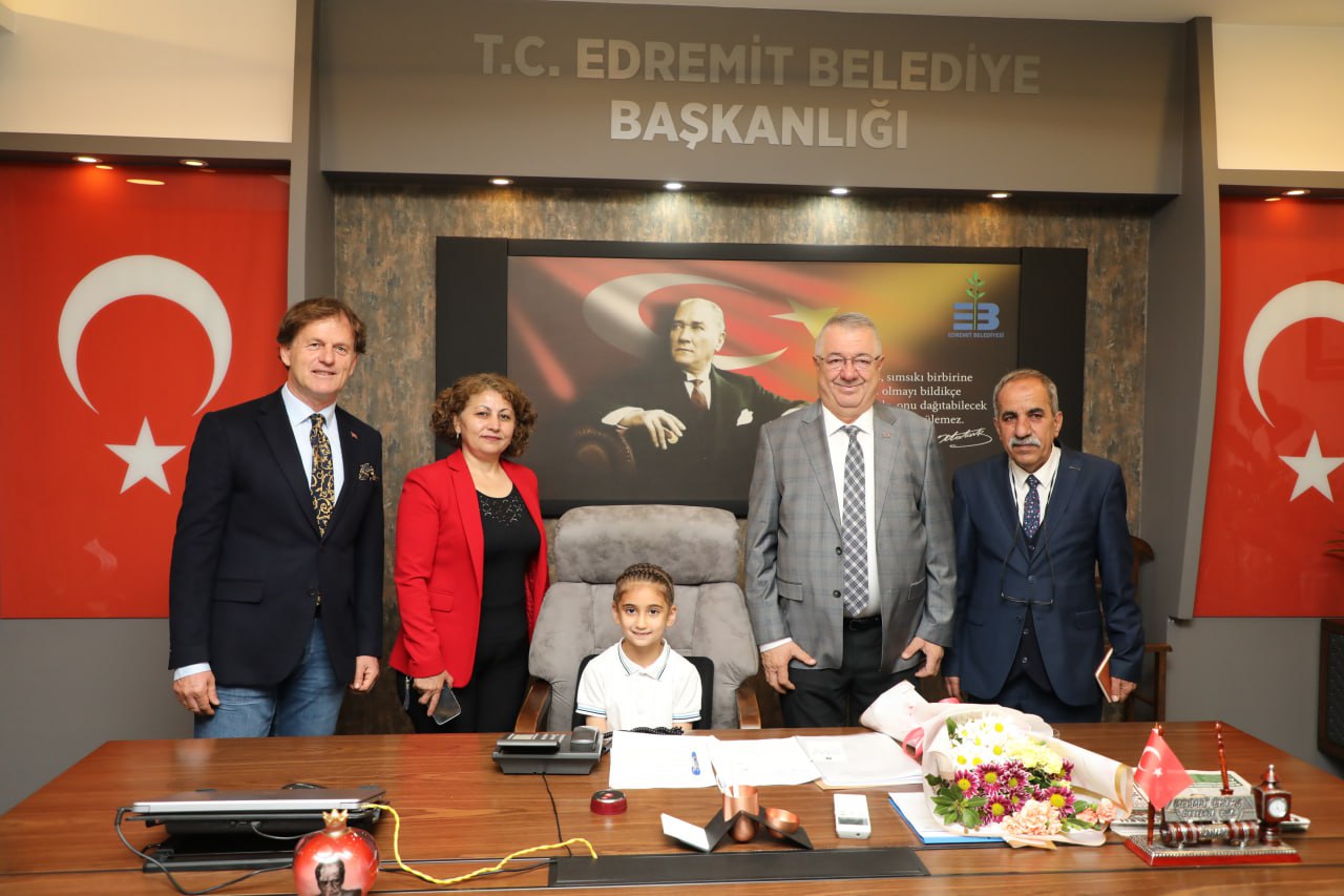 23 Nisan Ulusal Egemenlik ve Çocuk Bayramı sebebiyle Edremit Belediye Başkanı Mehmet Ertaş, koltuğunu Karagözoğlu İlkokulu öğrencisi Begüm Taşkıran’a devretti. Çocuk Başkan Taşkıran, Edremit’in en tem...