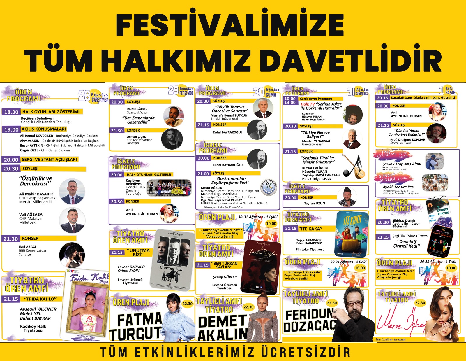 7’den 70’e her kesime hitap eden dolu dolu program ile Burhaniye’de festival rüzgarı esecek.