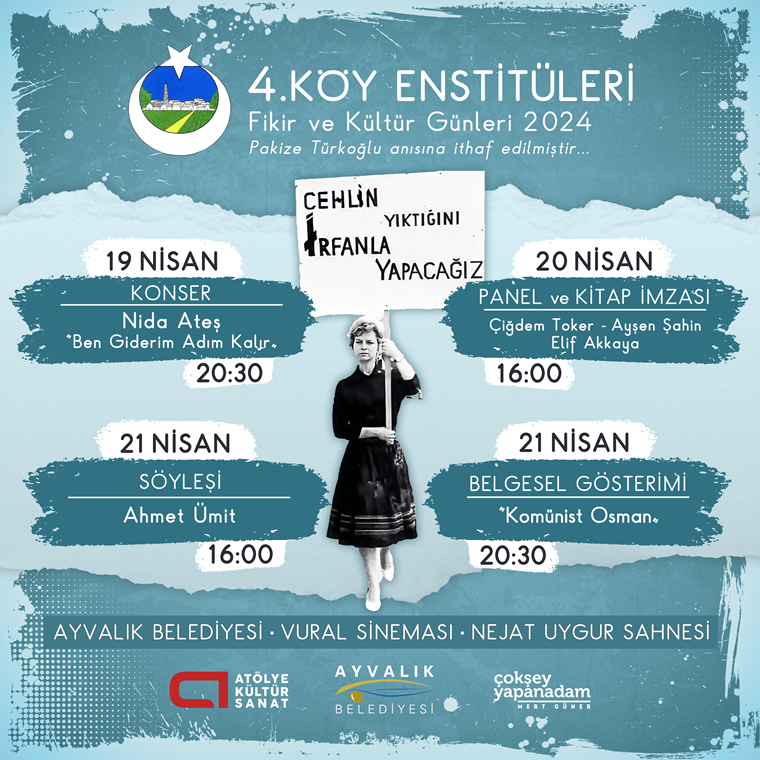 İlk olarak 19 Nisan akşamı usta halk müziği sanatçısı Nida Ateş’in Aşık Veysel’in eserlerinden bir seçki ile İsmet İnönü Kültür Merkezi’nde saat 20.30’da vereceği konserin ardından, 20 Nisan günü saat 16.00’da Ayvalık Belediyesi Vural Sineması Nejat Uygur Sahnesi’nde gazeteci-yazar Çiğdem Toker, iletişimci-yazar Ayşen Şahin ve Yay-Koop Başkanı Elif Akkaya’nın katılacağı panel düzenlenecek.