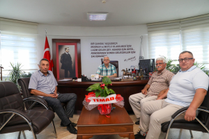 Çelebi Öztürk ve Kadir Şehirli ile birlikte Burhaniye Belediye Başkanı Ali Kemal Deveciler’i makamında