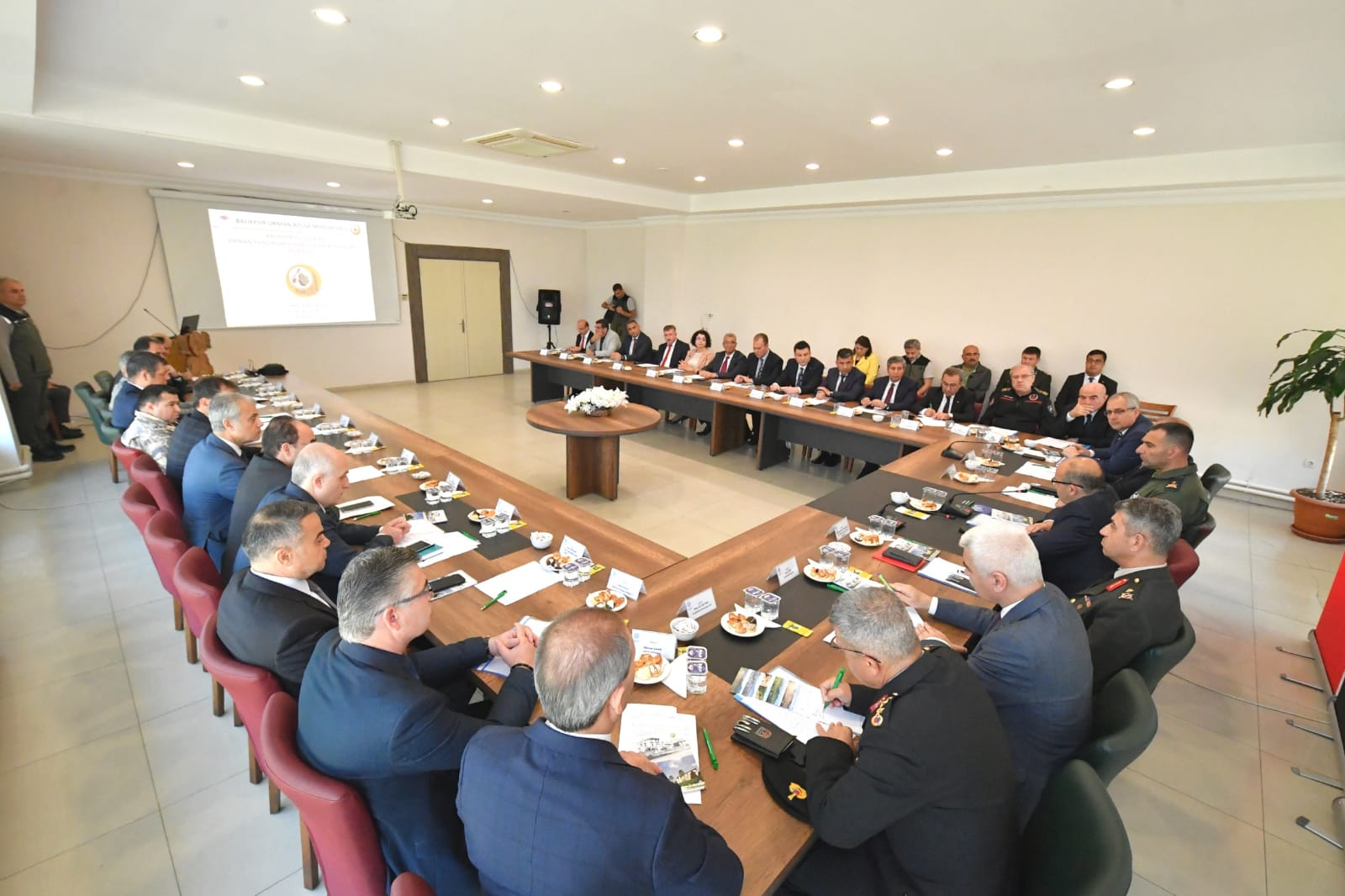 Orman Bölge Müdürlüğü Yangın Yönetim Merkezi’nde yapılan toplantıda, geniş ormanlık alana sahip Balıkesir’de yangın riskinin yüksek olduğu yaz aylarında orman yangınlarına karşı alınacak tedbirler değerlendirildi. Ormanların korunması adına yapılacak çalışmalar ve olası yangınlarda koordineli bir şekilde yürütülecek mücadele için yapılması gerekenler ele alındı.